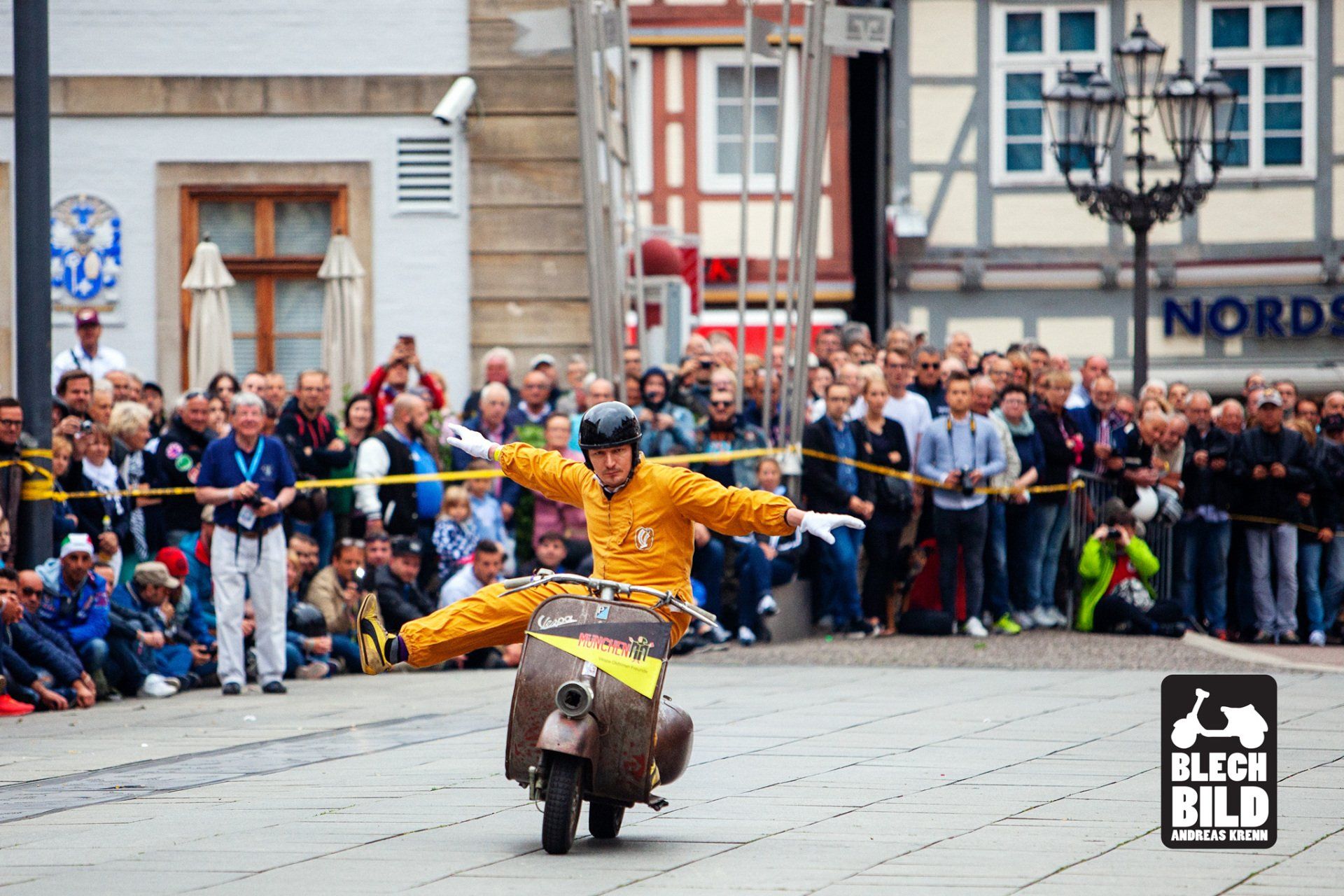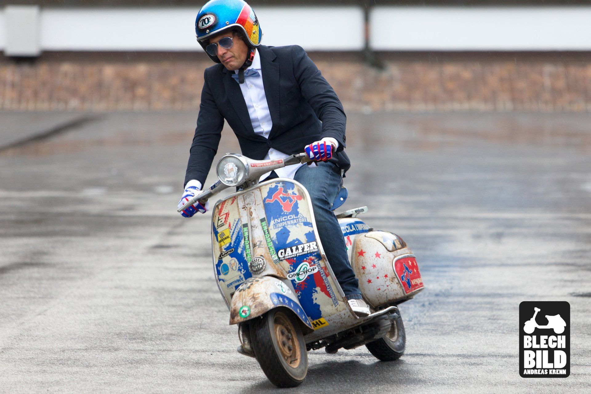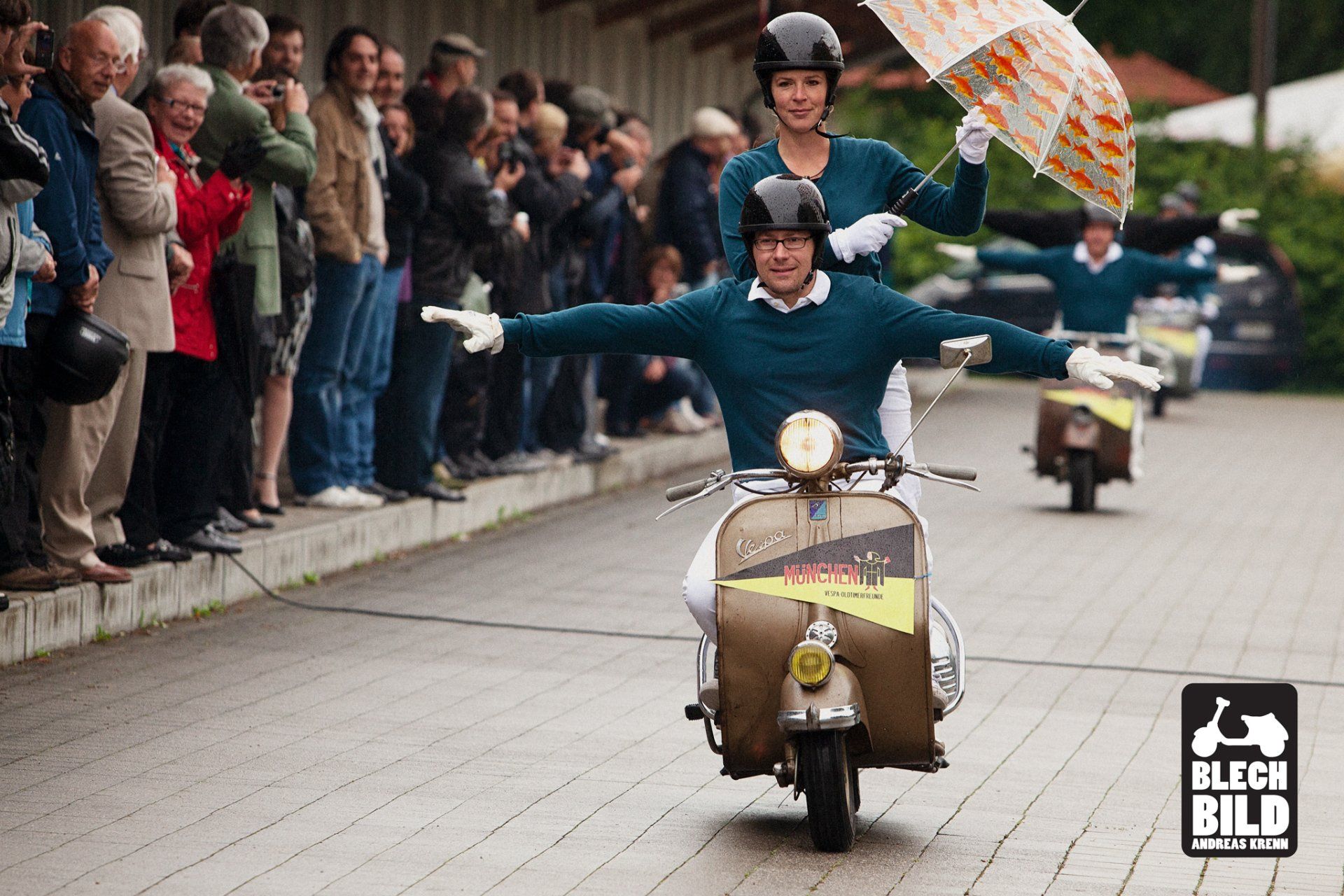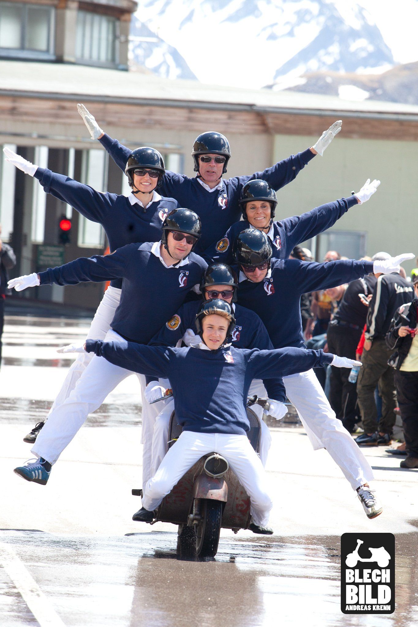 In den 50iger Jahren gab es bei Piaggio ein eigenes Werksteam. Dieses Werksteam fuhr bei verschiedenen Veranstaltungen eine Show. Immer mit großartigen Figuren und sehr aufwendig einstudiert. In den 60iger verschwand dieses Team und man hörte ewig davon nichts mehr. Robin Davy und die Vespa Oldtimer Freunde München, studierten diese schwierigen Figuren wieder ein. Sie begannen auch auf Vespatreffen Ihre Show zu zeigen mit sehr großem Erfolg. Zu diesen Shows aus den 50igern gibt es noch jemand der Shows mit Vespa macht. Nicola L'Impennatore hat das Unternehmen Vespafreestyle.it gegründet. Auch er fährt Shows auf verschiedenen Veranstaltungen. Es gibt noch den einen oder anderen Versuch in diesen Bereich, die aber keine weiter Aufmerksamkeit benötigen. Ich möchte Euch gerne von diesen beiden sehr unterschiedlichen Shows immer wieder Fotos zeigen.